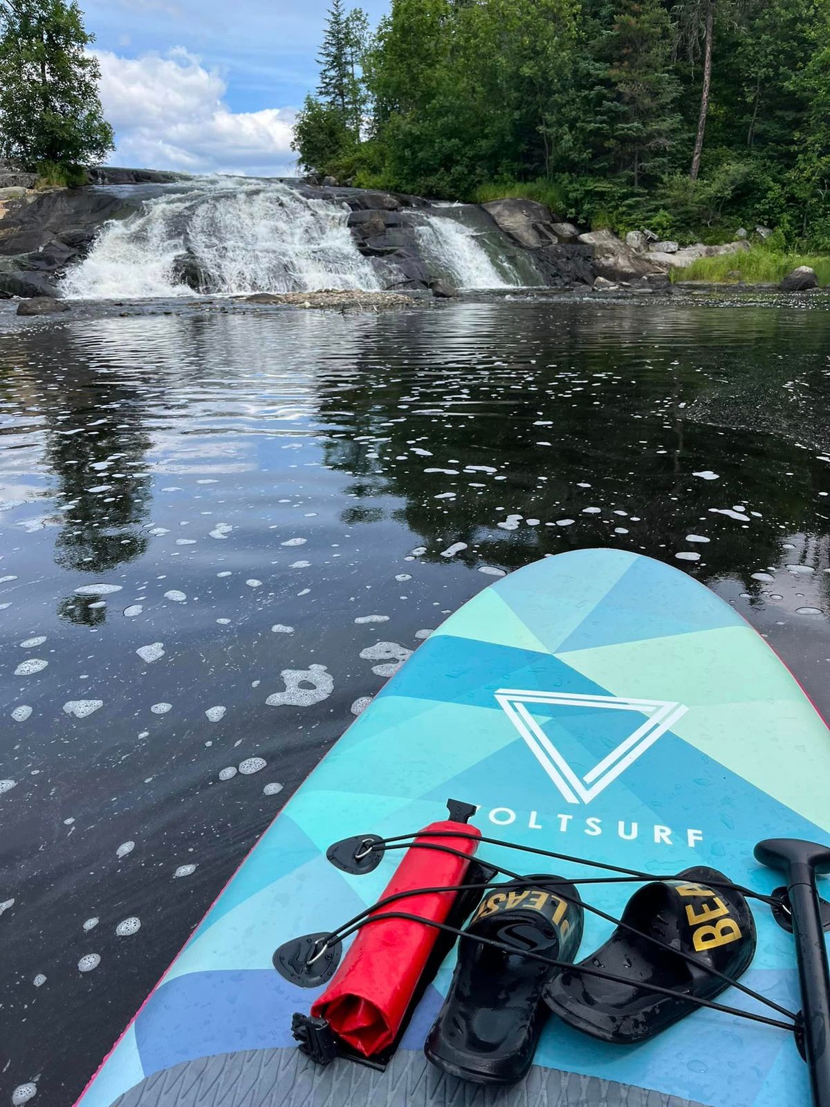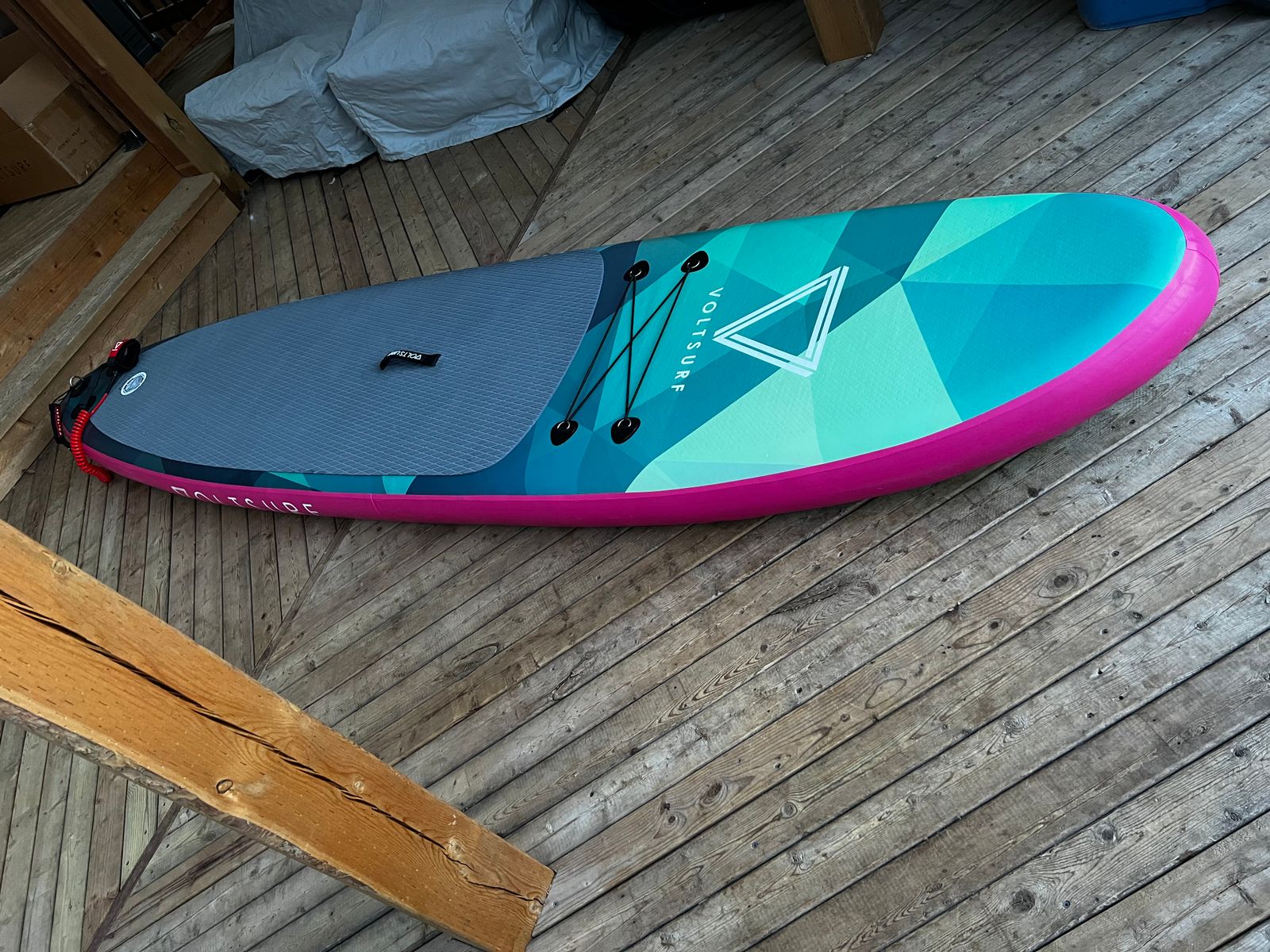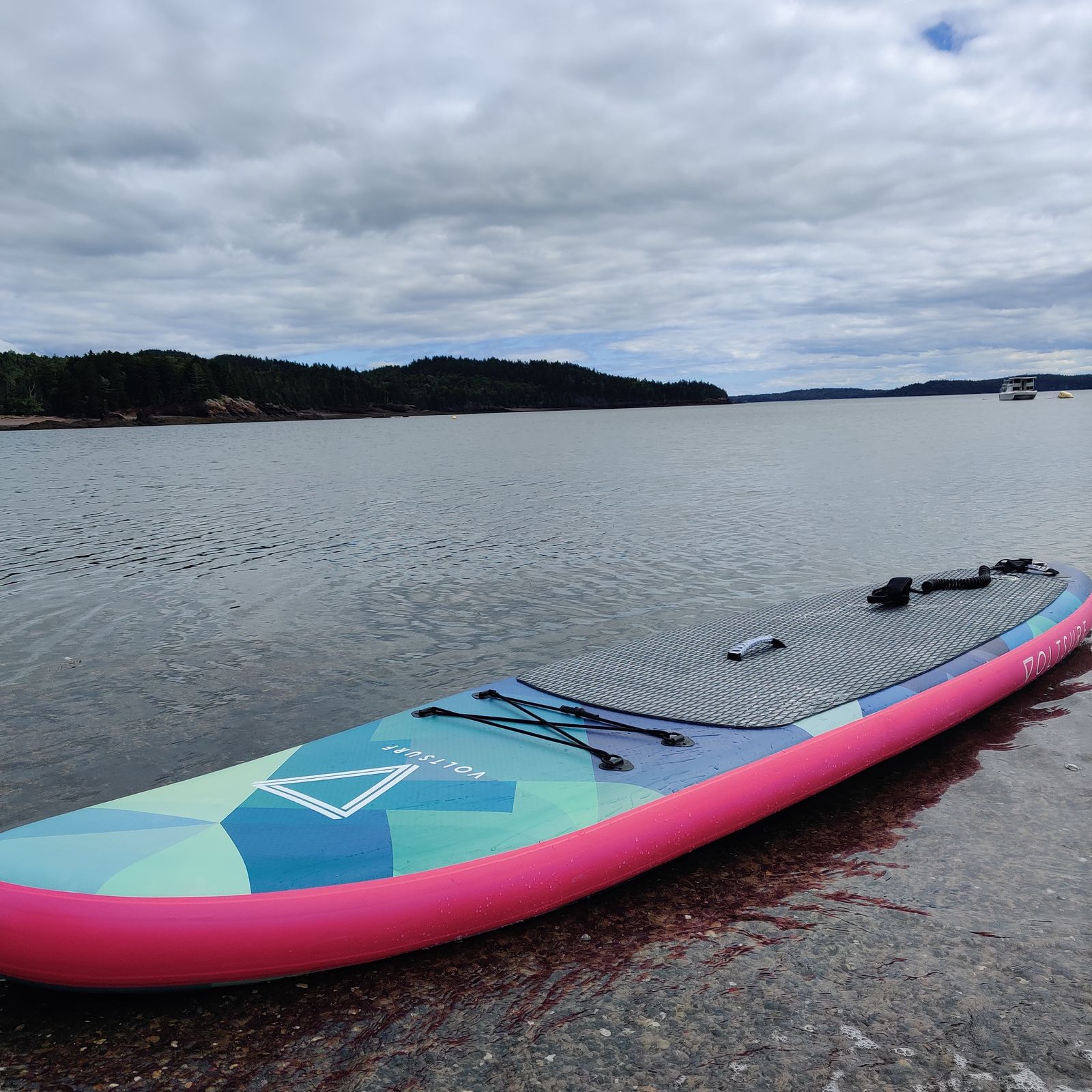 I was so excited to receive this board. It was super easy to inflate and install the fin. Was amazing on the water too!!! I can’t wait for more time on it. I also really love the colour combination! Long enough for my two kiddos to sit on as well!